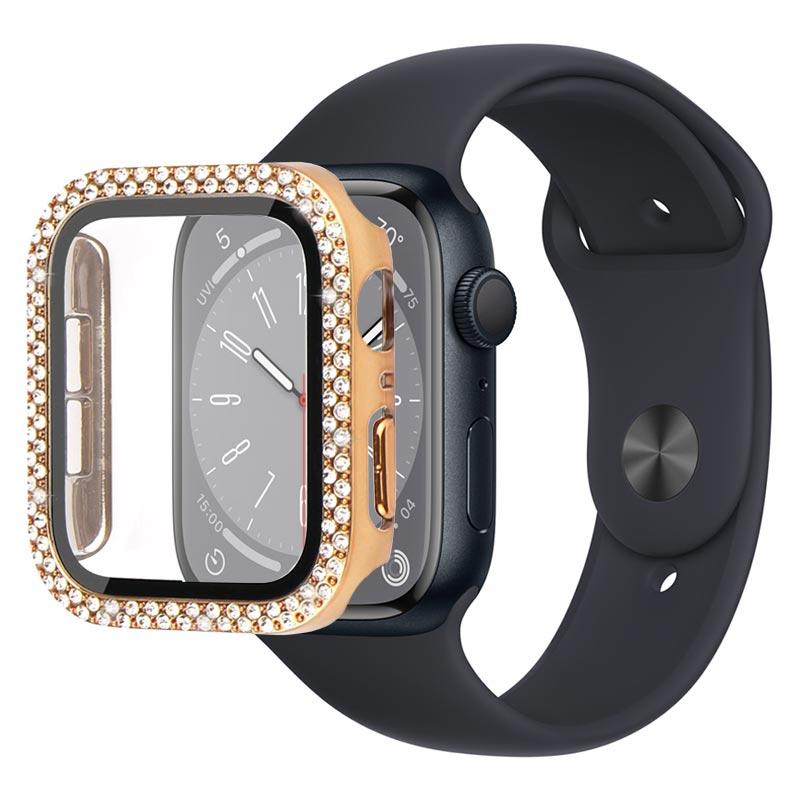 Glam up and protect your Apple Watch Series 9/8/7 with this attractive, shiny case with a screen protector. This super durable plastic case is boosted with the crystal-clear tempered glass screen protector to complete the protection of your Apple Watch Series 9/8/7. Meanwhile, sparkling and stylish rhinestones give your Apple Watch Series 9/8/7 a new stunning look that catches everyone's eye.