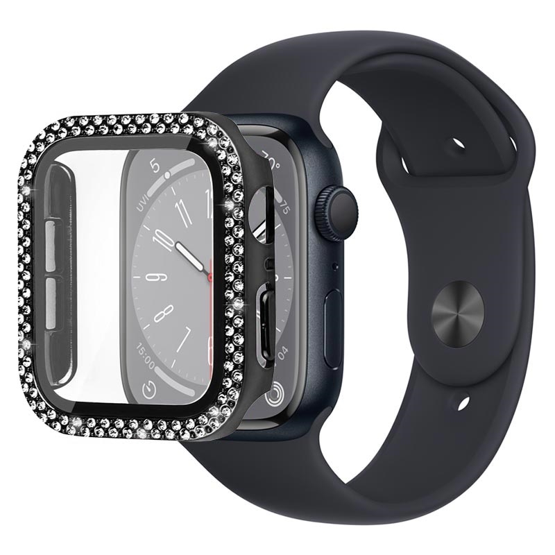 Glam up and protect your Apple Watch Series 9/8/7 with this attractive, shiny case with a screen protector. This super durable plastic case is boosted with the crystal-clear tempered glass screen protector to complete the protection of your Apple Watch Series 9/8/7. Meanwhile, sparkling and stylish rhinestones give your Apple Watch Series 9/8/7 a new stunning look that catches everyone's eye.