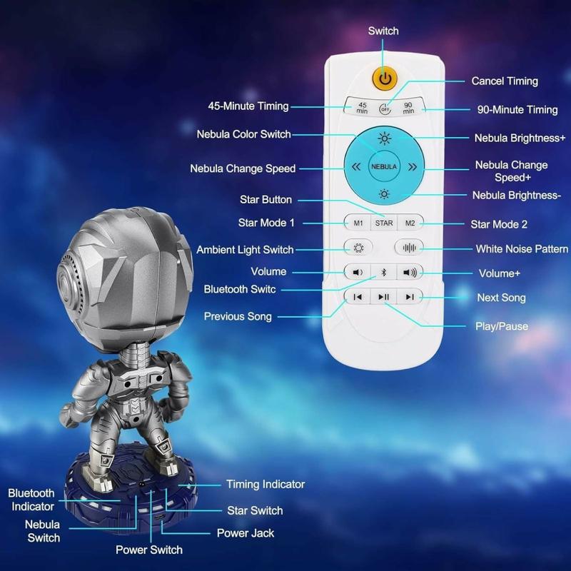 Robot Bluetooth Speaker with Nebula Projection and Night Light Atmosphere - Remote Control, BT 5.0