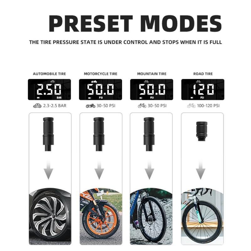 It can be used to inflate various products that need to be inflated, such as car tires, bicycle tires, motorcycle tires, balls, etc., with a wide range of applications