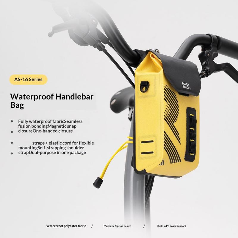 Rockbros AS-160 Waterproof Handlebar Bag 1.3 L - Magnetic Flip Cover, 14 Mounting Points, Shoulder Strap 1.5 m