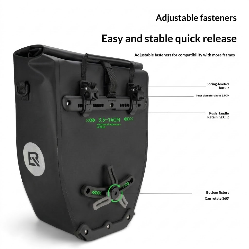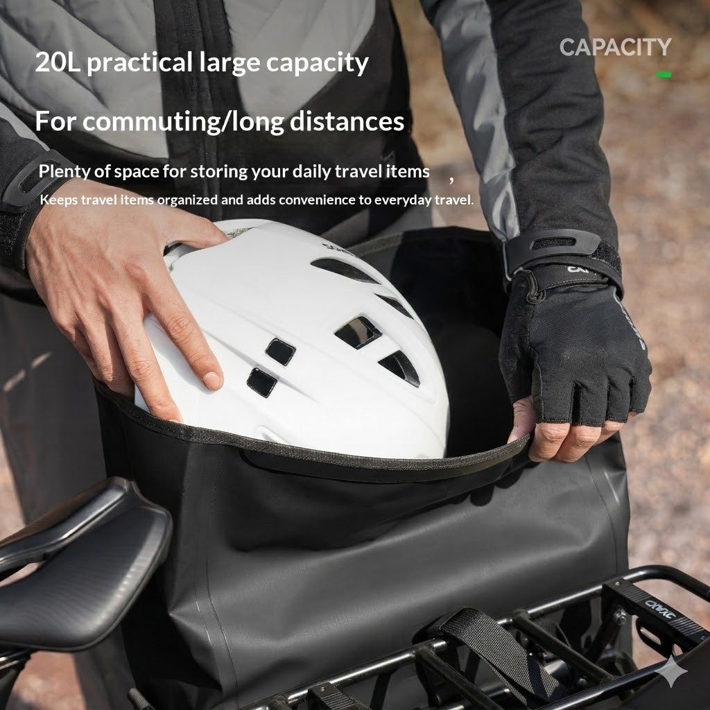 Carry your essentials more comfortably on every ride with the ROCKBROS AS-166 rear rack bag. Designed for commuting, touring, and everyday cycling, this versatile 20L pannier combines practical storage with reliable weather protection. The roll-top construction lets you adjust the bag size to match your load, making it just as useful for daily errands as it is for longer weekend rides.