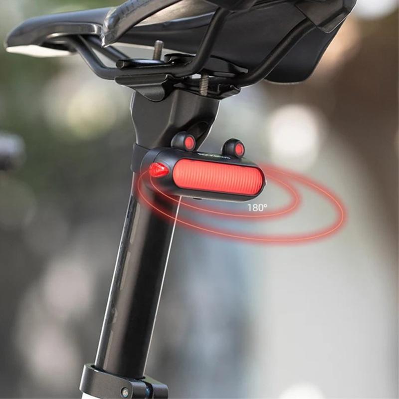 The bike taillight is equipped with a motion sensor and light sensor, which activate a highlight mode for 2s when the bike brakes, effectively warning riders behind