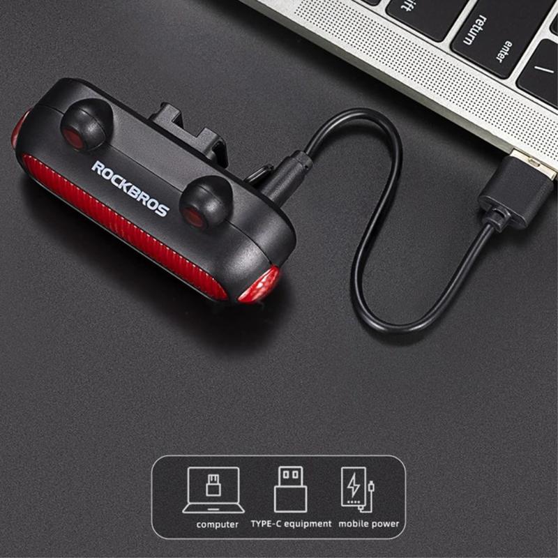 The bike taillight is equipped with a motion sensor and light sensor, which activate a highlight mode for 2s when the bike brakes, effectively warning riders behind