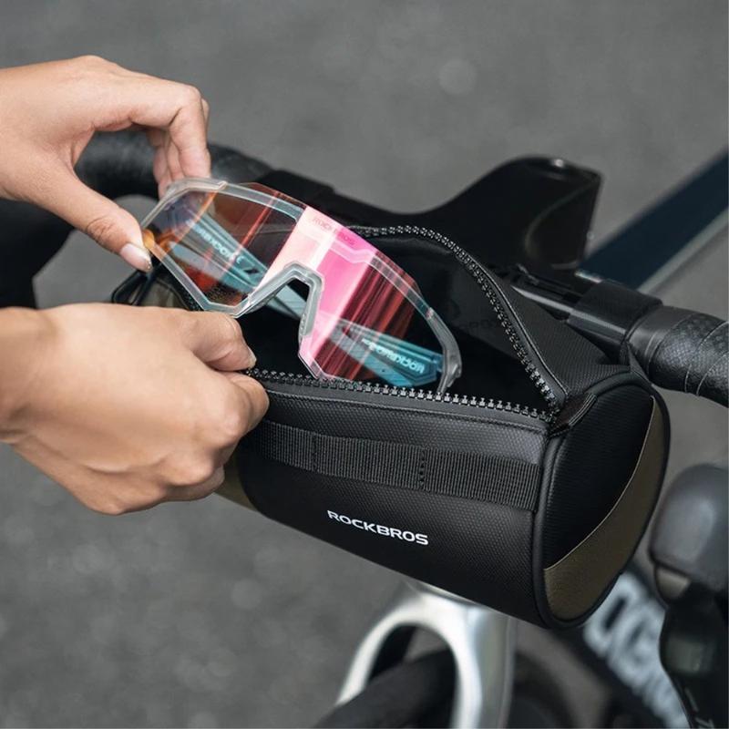ROCKBROS W007 Bicycle Handlebar Hanging Bag Polyester+PU Bike Front Cylinder Bag
