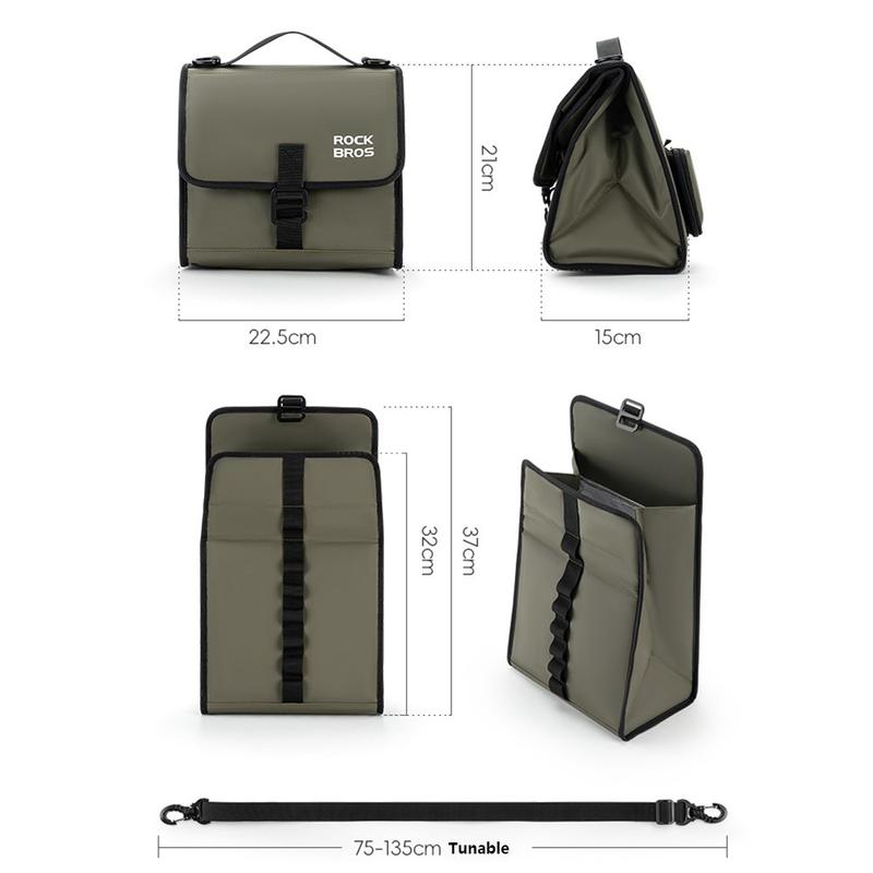 ROCKBROS W010 For Brompton Bicycle Front Bag Aluminum Film Lining Food Storage Bag - Dark Green