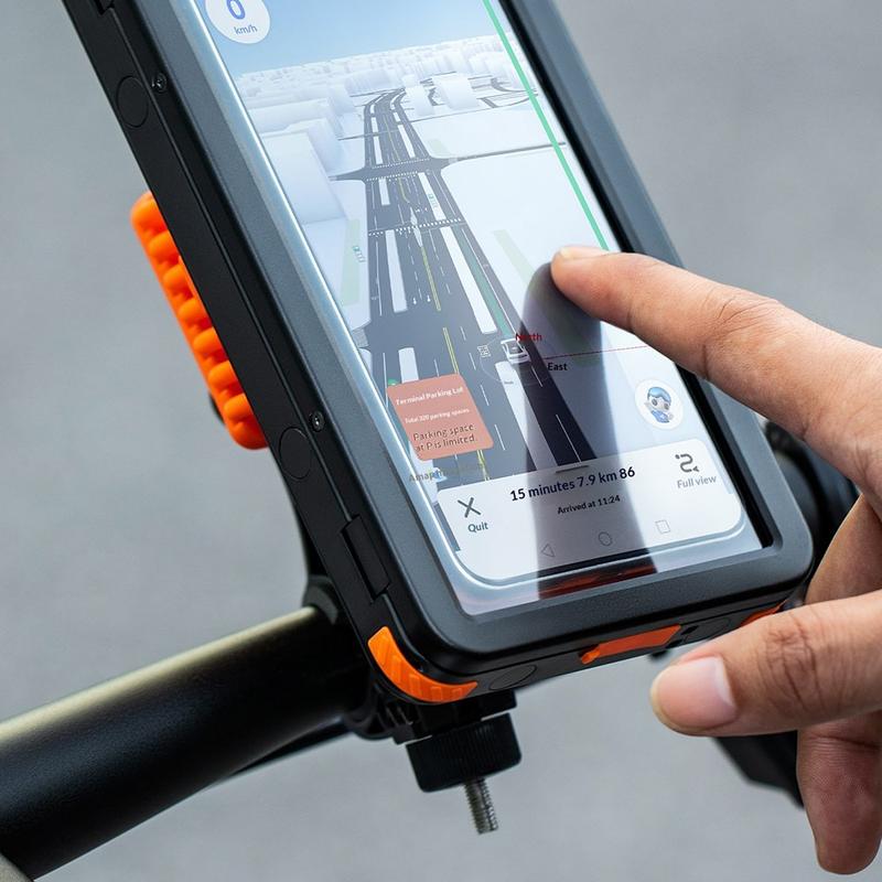 - Waterproof handlebar phone holder for bicycles and e-bikes