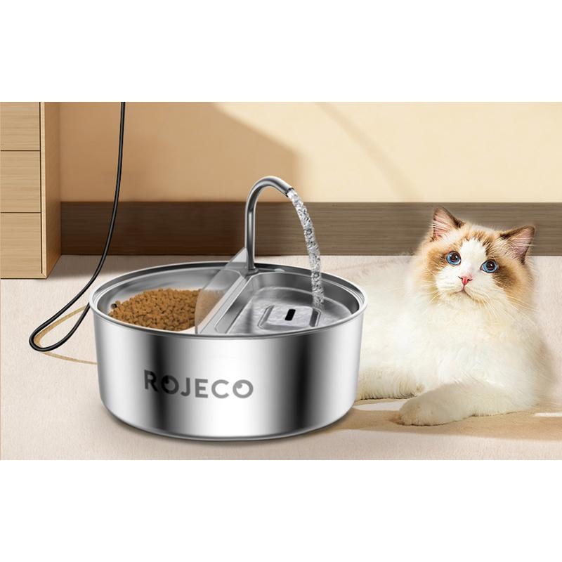 Rojeco 2-in-1 Stainless Steel Pet Water Fountain & Feeder - 3.2l