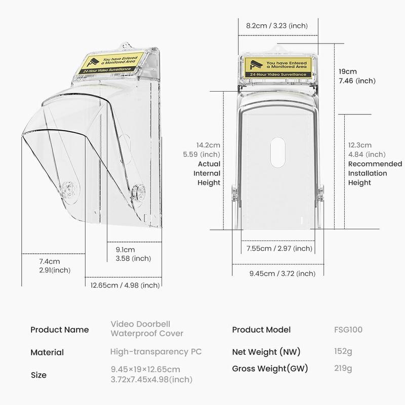 The doorbell waterproof cover is designed to protect your video doorbell from rain, snow, dust. Suitable for both indoor and outdoor installations, it ensures reliable performance and clear camera visibility even in challenging weather conditions.