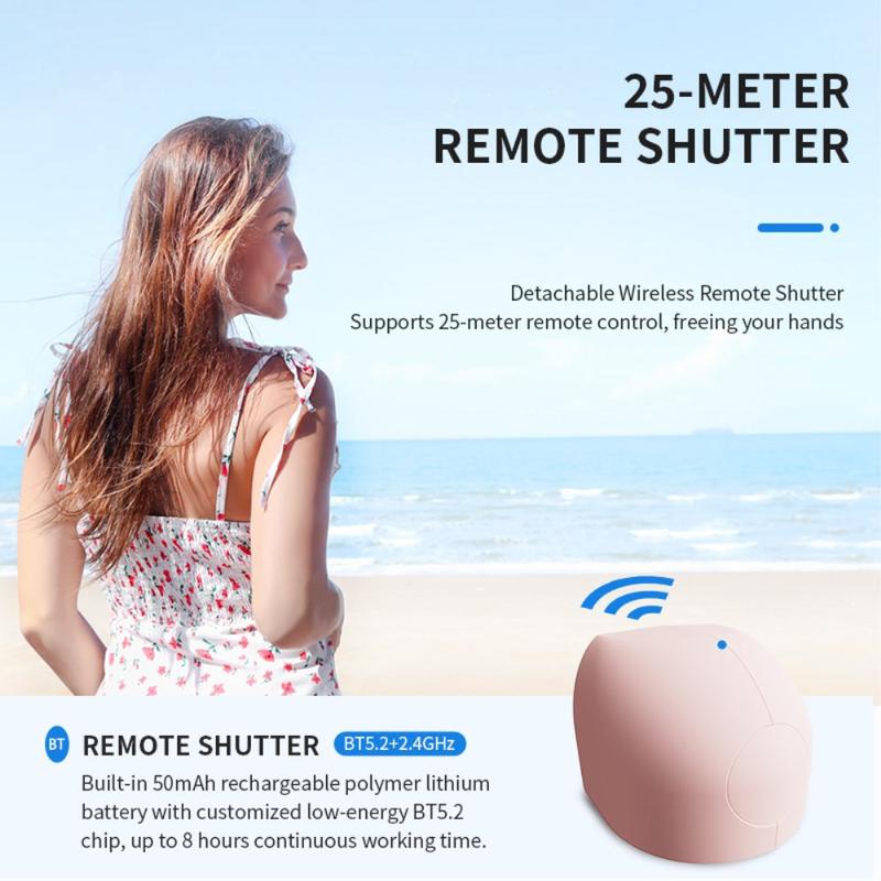 - Detachable Wireless Remote Shutter: Easily control your shots with the detachable remote shutter, supporting a range of up to 25 meters, ideal for group shots, vlogging, and hands-free shooting.