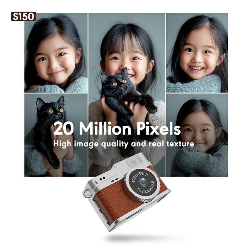 S150 Retro Mini Camera - 1080p Pendant Camera with 0.96-inch IPS Screen, Loop Recording