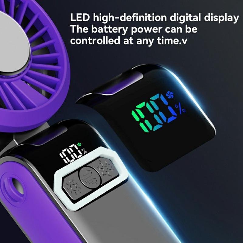 The S2 offers precise airflow control with 100 speed levels, allowing you to adjust the breeze to your exact comfort level. An LED digital display shows battery status and operating mode in real time, making it easy to monitor usage and settings. Built with a 2400mAh rechargeable battery, the fan supports convenient Type-C charging and can also be used while charging, which adds extra flexibility during longer trips or work sessions.