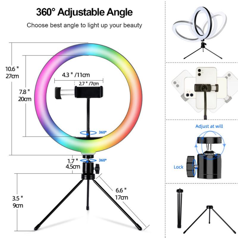 S26-RGB 10" RGB LED Ring Light Selfie Photography Fill Light with Phone Holder and Tripod