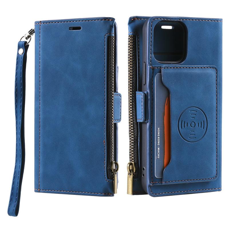 Saii Zipper Wallet Case with Strap for iPhone 15 Plus