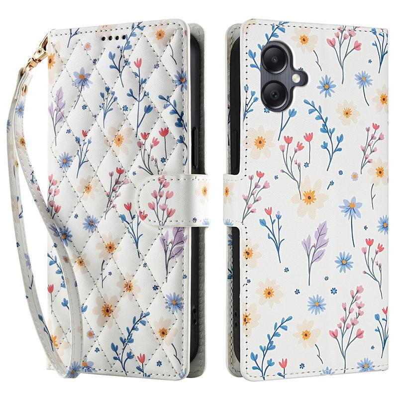 Refresh your Samsung Galaxy A07 4G with a slim flip wallet that blends secure protection and everyday practicality. The rhombic stitched front and tiny floral pattern add elegant style, while a soft TPU shell cushions drops and a polyurethane wrap guards against scratches. Multiple card slots, a cash pocket and an included wrist strap make this case the one-stop carry solution for commute, travel or night out.