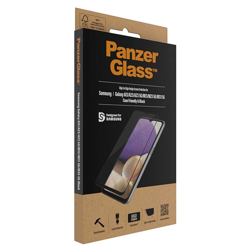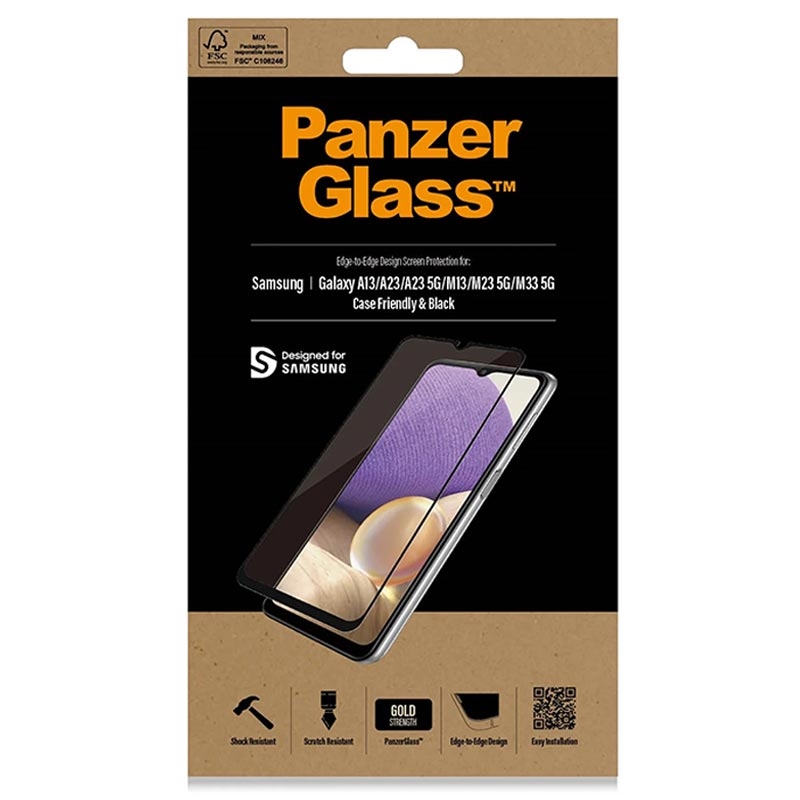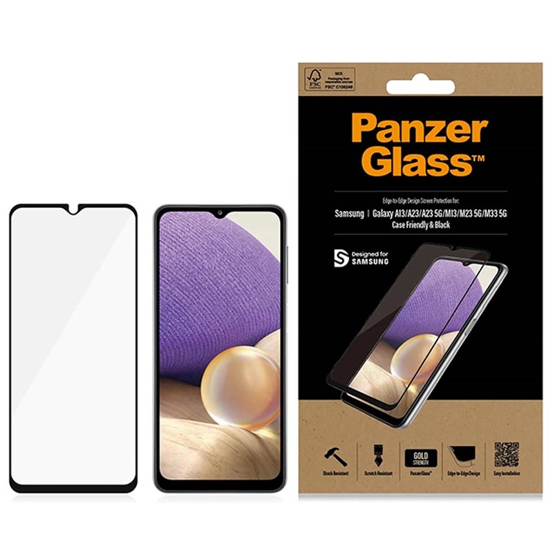 - PanzerGlass Case Friendly tempered glass screen protector for Samsung Galaxy A13, Galaxy A23, Galaxy A23 5G, Galaxy M13, Galaxy M23, Galaxy M33
