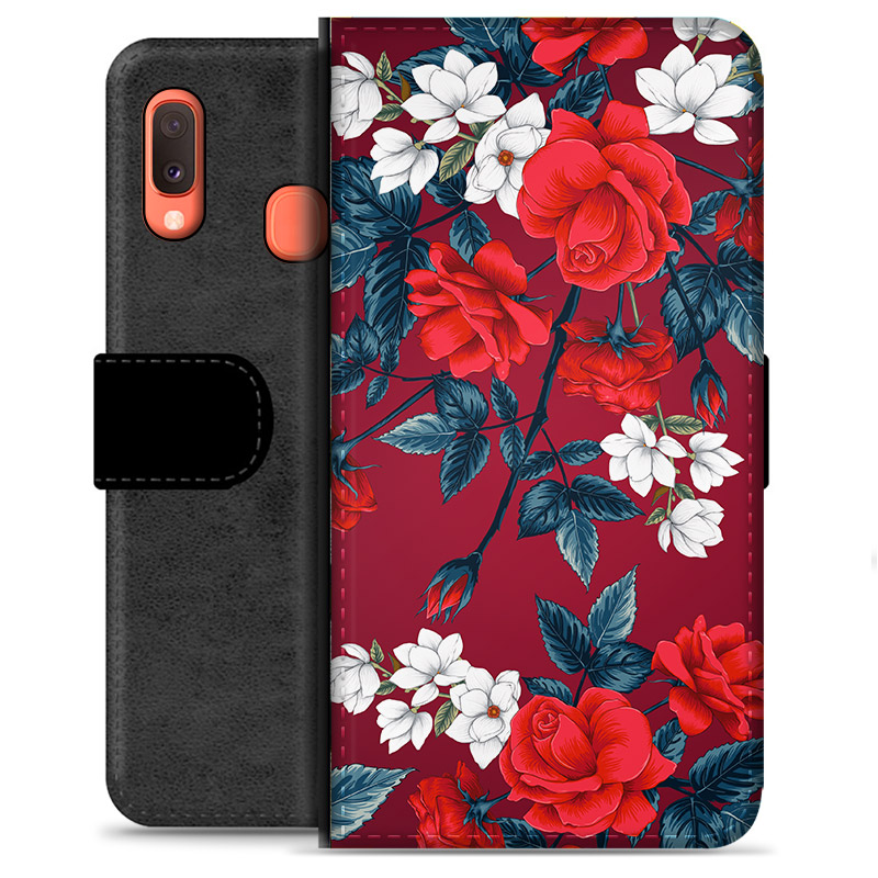 Samsung Galaxy A20e Premium Wallet Case - Vintage Flowers