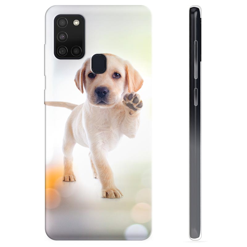 Protect and personalize your Samsung Galaxy A21s with this charming TPU case featuring a dog design. The case showcases a high-quality image of an adorable puppy, frozen in a moment of captivating cuteness. The puppy appears to be reaching out towards you, making it a delightful accessory for dog lovers and pet owners.