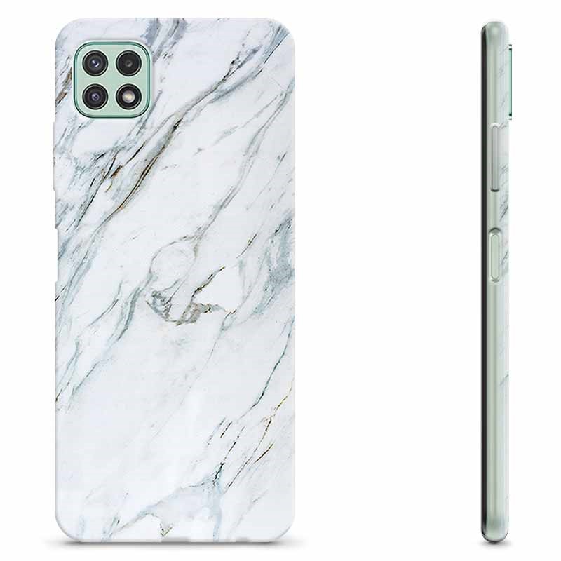 Protect and stylize your Samsung Galaxy A22 5G with our sleek and elegant TPU case featuring a stunning marble design. This case will not only give your phone a luxurious look but also provide it with the protection it needs from daily wear and tear. Made from high-quality thermoplastic polyurethane (TPU) material, it offers durability and a comfortable grip, ensuring your phone remains safe in your hands.