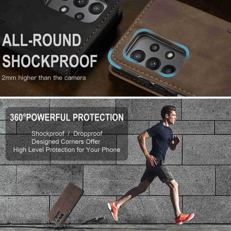 A combination of TPU and polyurethane provides all-around protection for Samsung Galaxy A23 5G, shielding it from dust, dirt, impacts, scratches, and daily wear. Magnetic attraction keeps the case closed, and clever design enables hands-free usage while watching media content.