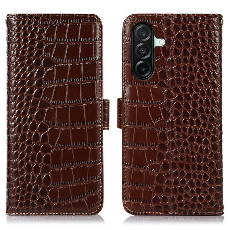 Samsung Galaxy A27 Crocodile Series Wallet Leather Case with RFID - Brown