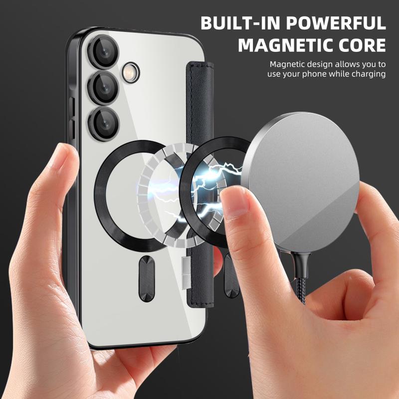 This premium Samsung Galaxy A35 case is crafted with high-quality TPU, Acrylic, and polyurethane, using a fine process to ensure a delicate and exquisite finish. It is equipped with a convenient card slot for easy swiping and spending on the go, and features a strong magnet for automatic closing, making it safe and convenient to manage items inside. This Samsung Galaxy A35 case provides effective protection against daily wear and tear, scratches, marks, and scrapes, while the advanced RFID blocking technology in the card slot ensures your personal information is protected from theft. Additionally, the built-in magnetic ring is compatible with MagSafe wireless charging, meaning you can charge your Samsung Galaxy A35 without taking off the case.