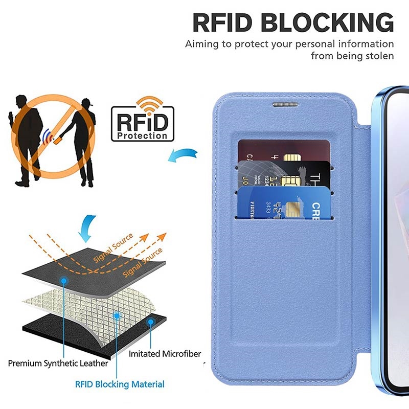 - Features: Card slot, strong magnet for automatic closing, RFID blocking technology, built-in magnetic ring