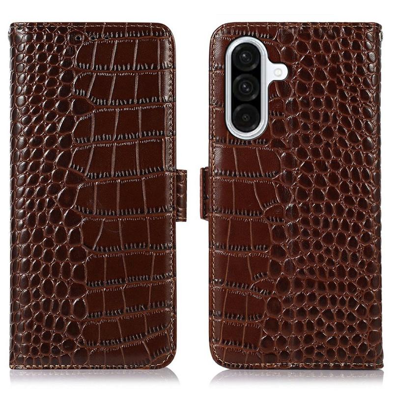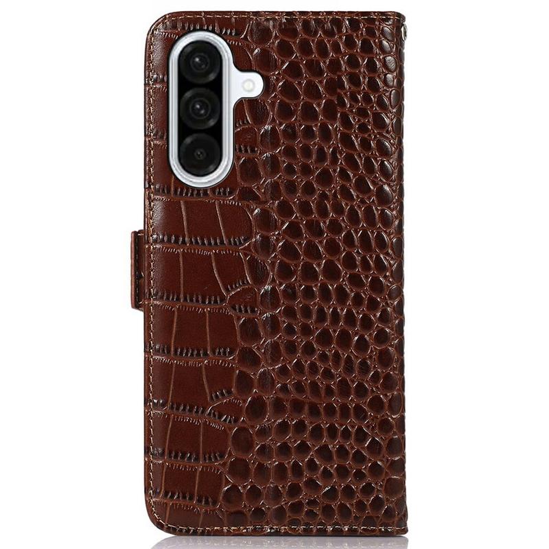 A lightweight and soft wallet case with a unique crocodile texture, the perfect choice to protect your Samsung Galaxy A36 and keep it undamaged. It's made of high-quality genuine leather and inner TPU material, designed with three card slots, an ID slot, and a pocket for cash, ideal for carrying your essentials next to your Samsung Galaxy A36. Also, RFID technology effectively blocks signals and keep's your data secured.