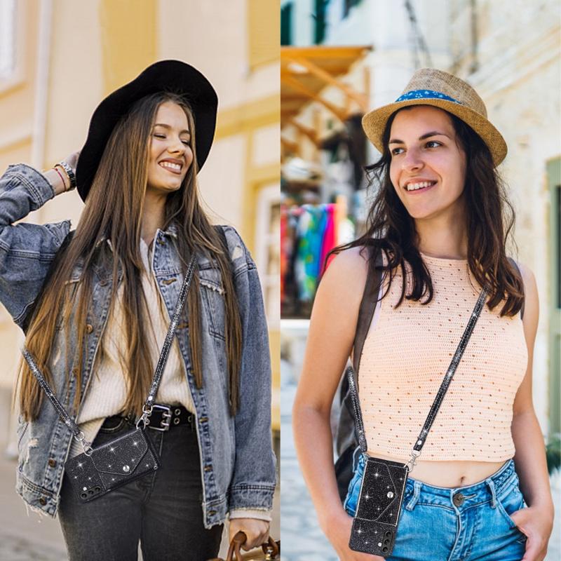 The premium quality case from the Stardust series is the right choice for protecting your Samsung Galaxy A36 from any potential damage. It has a card holder on the back with a snap button which is great to store your essential cards and keep them safe. A shiny glitter surface adds a touch of glamour to your phone. In addition, the cover comes with a 150cm shoulder strap, allowing you to carry your Samsung Galaxy A36 with you wherever you go.