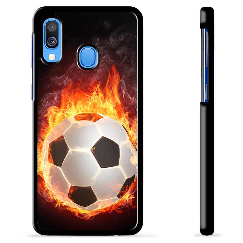 This protective cover for the Samsung Galaxy A40 is an eye-catching accessory that sports enthusiasts, especially football fans, will surely appreciate. The design features a dynamic image of a soccer ball engulfed in a realistic flame, appearing as though it's bursting with energy and movement.