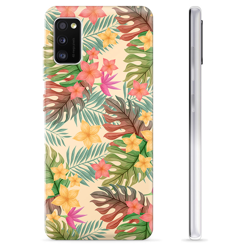 The Samsung Galaxy A41 TPU Case with Pink Flowers is a stylish and protective accessory designed specifically for the Samsung Galaxy A41. This case features an eye-catching floral pattern with an array of pink blossoms and green foliage against a soft, pastel background. It's crafted from high-quality thermoplastic polyurethane (TPU) material that provides a balance between flexibility and durability.