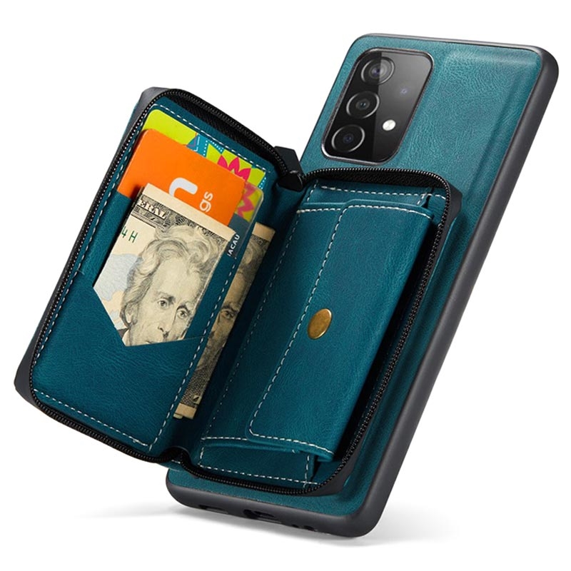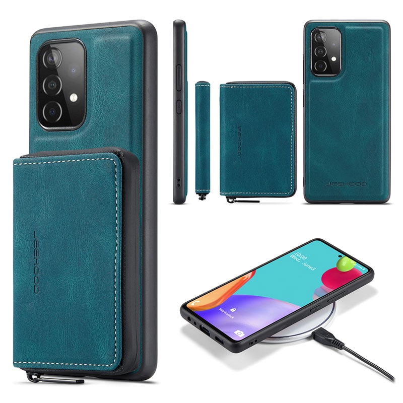 Experience the perfect blend of style, convenience, and protection for Samsung Galaxy A52 5G, Galaxy A52 4G, Galaxy A52s 5G with the Jeehood detachable case with wallet. This stylish cover features a two-in-one design with a detachable wallet, securely held together by strong magnetism. The wallet has three card slots and two cash pockets equipped with a zipper closure, keeping everything secure inside. Crafted from a blend of TPU and premium PU leather, it ensures excellent drop-proof protection.
