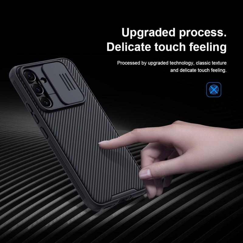 Enjoy extra privacy and protection with the Nillkin CamShield Pro hybrid case. Combining rigid plastic and TPU, the camera cover prevents scratches while defending your Samsung Galaxy A54 5G from daily wear and tear.