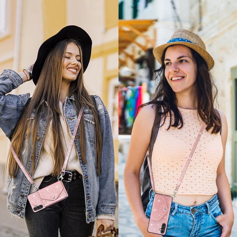 The premium quality case from the Stardust series is the right choice for protecting your Samsung Galaxy A56 from any potential damage. It has a card holder on the back with a snap button which is great to store your essential cards and keep them safe. A shiny glitter surface adds a touch of glamour to your phone. In addition, the cover comes with a 150cm shoulder strap, allowing you to carry your Samsung Galaxy A56 with you wherever you go.