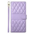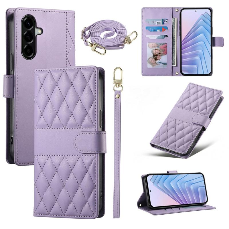 Luxury Quilted Wallet Case with Shoulder & Wrist Strap for Samsung Galaxy A57 - Rhombus Pattern Protective Cover