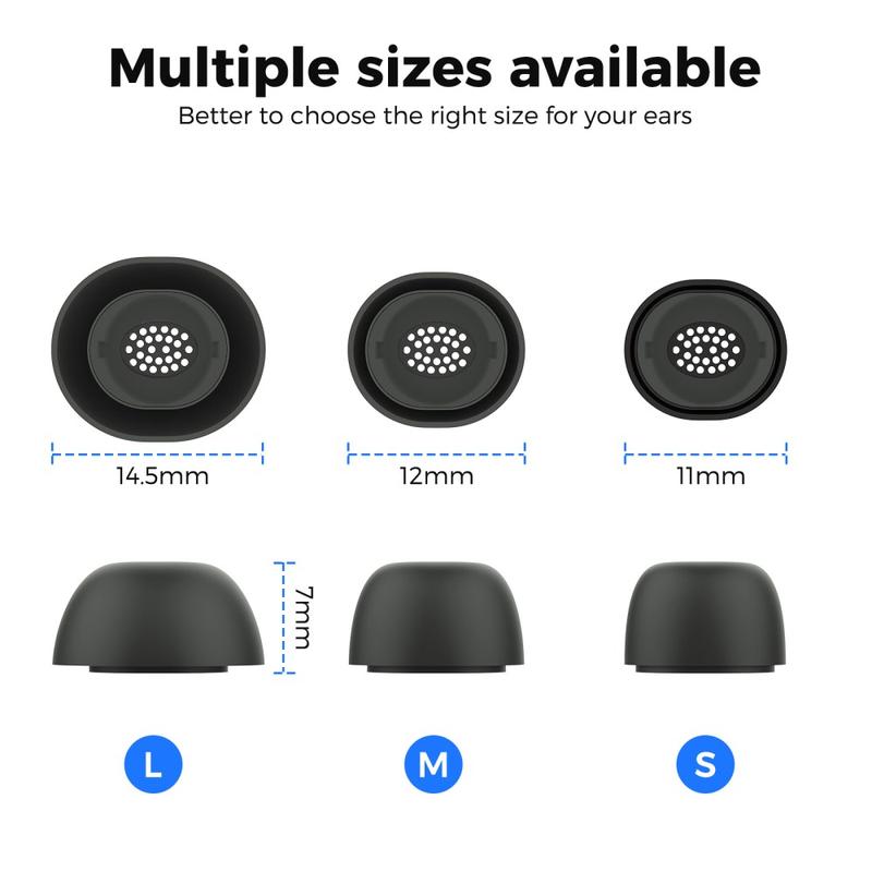 - Three sizes (S / M / L) accommodate ear canals from 10 mm to 14 mm, ensuring longer listening sessions without pressure points.