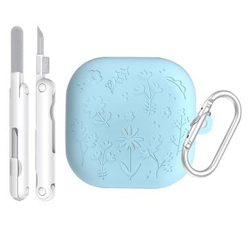 Floral Engraved Silicone Case with Cleaning Pens and Carabiner for Samsung Galaxy Buds4, Galaxy Buds4 Pro