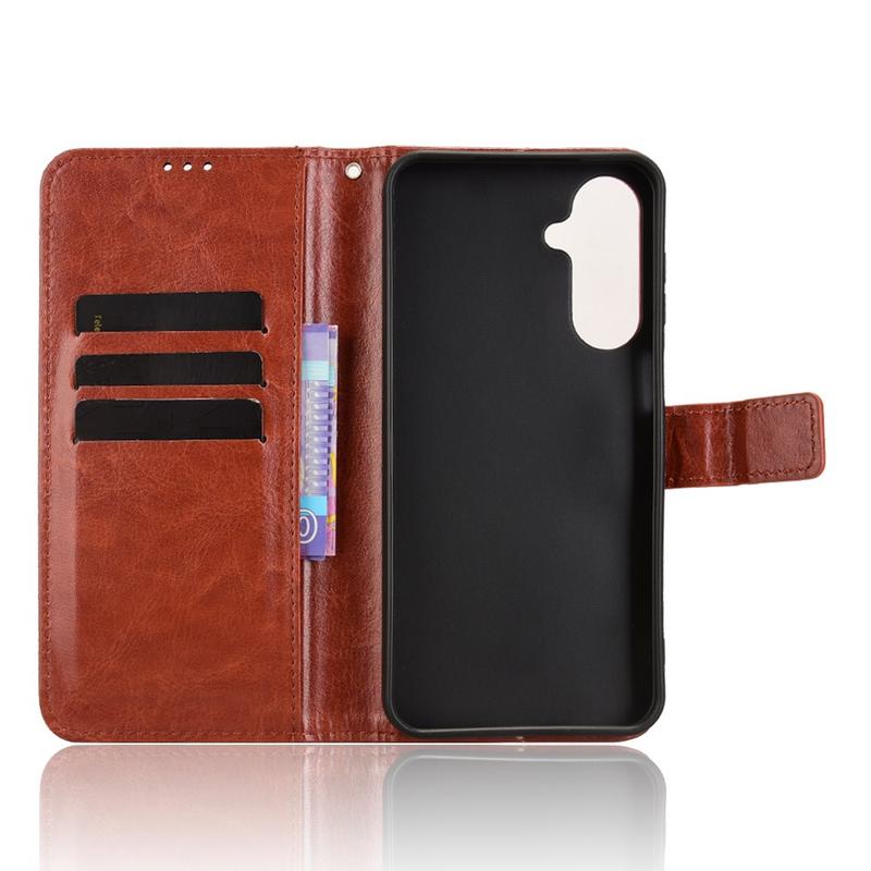 Give your new Samsung Galaxy M36 a refined, vintage look while replacing your everyday wallet. The Crazy Horse-textured polyurethane exterior pairs with a shock-absorbing TPU shell to guard against drops and scratches, while clever pockets keep cards and cash organised.