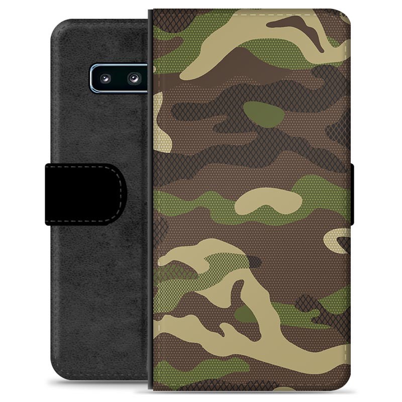 The Samsung Galaxy S10 Premium Wallet Case featuring a stylish camouflage pattern is not only visually striking but also functionally superior in safeguarding your smartphone. This case offers comprehensive protection by combining a durable exterior with a soft interior lining that cushions the device against shocks and bumps. It is tailored precisely to fit the Samsung Galaxy S10, allowing easy access to all buttons, ports, and the camera.