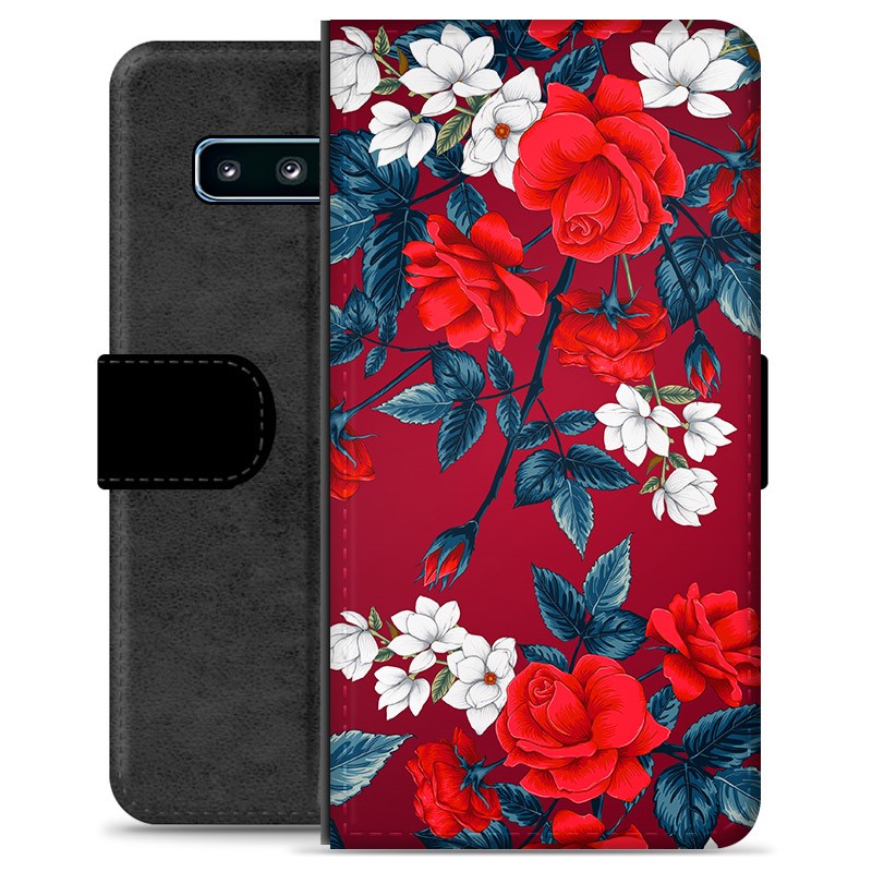 The Samsung Galaxy S10 Premium Wallet Case featuring a Vintage Flowers design is an elegant and functional accessory for your device. This wallet case provides both protection and style for your Samsung Galaxy S10 with its durable material and captivating floral pattern.