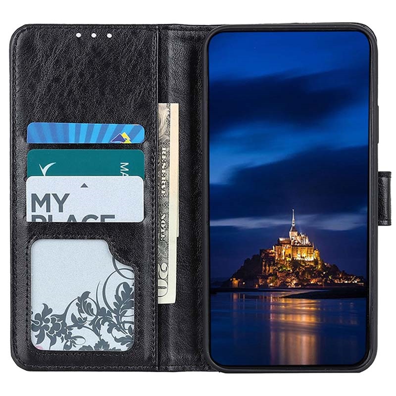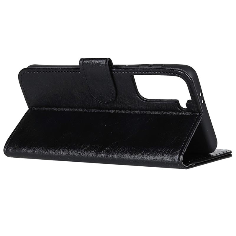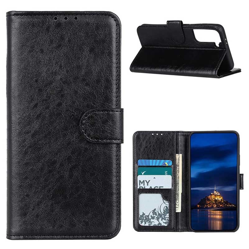 It's made of lightweight polyurethane and features inside card slots, a cash compartment, as well as an additional TPU case for your Samsung Galaxy S21+ 5G. It offers absolute safety against damage and is equipped with a foldable front flap that lets you set your Samsung Galaxy S21+ 5G in a comfortable viewing position.
