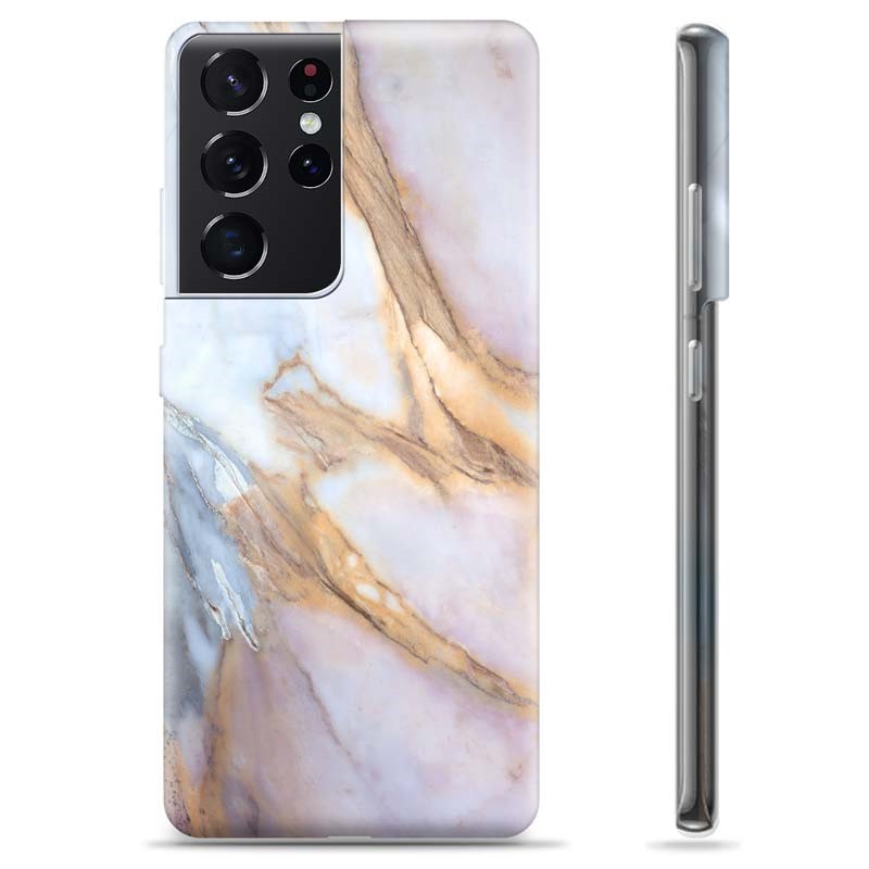 Protect your Samsung Galaxy S21 Ultra 5G with style and sophistication. Introducing the Elegant Marble TPU Case, designed to offer durability and an exclusive appearance to your device. This case features a stunning marble pattern with rich gold accents that exude elegance, ensuring your smartphone stands out with an upscale touch.