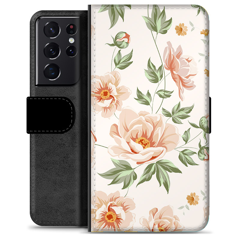 The Samsung Galaxy S21 Ultra 5G Premium Wallet Case with a floral design is a stylish and practical accessory designed to protect your smartphone while adding a touch of elegance. This premium case features a vibrant and colorful flower print on the exterior that brings life to your device, making it stand out with a classy and feminine aesthetic.