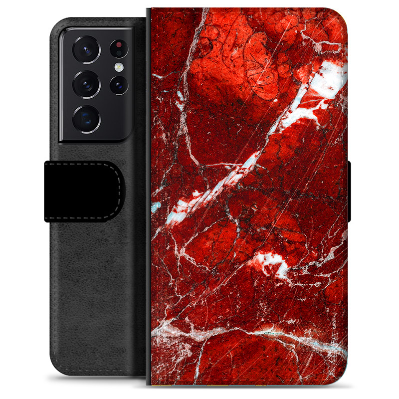 Samsung Galaxy S21 Ultra 5G Premium Wallet Case - Red Marble