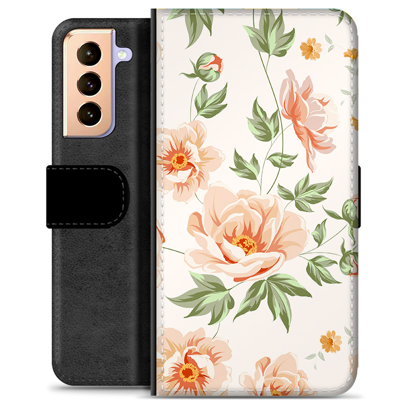 Protect your Samsung Galaxy S21+ 5G in style with this premium wallet case, adorned with a beautiful floral pattern. The case features a robust, protective exterior that shields your device from accidental drops, scratches, and impacts, while the eye-catching design adds a touch of elegance to your phone.