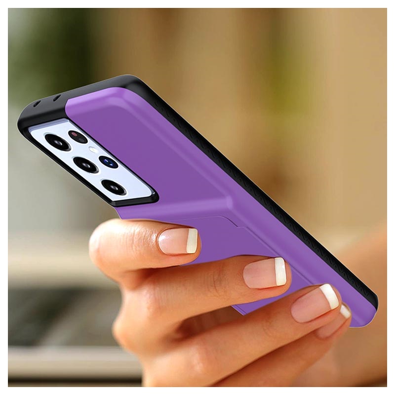 Refresh the look of your Samsung Galaxy S21 Ultra 5G with this sleek Hybrid Case! To always look perfect, there is an easily accessible mirror. Make shopping with two credit card slots easier. Reinforced edges will additionally protect your Samsung Galaxy S21 Ultra 5G.