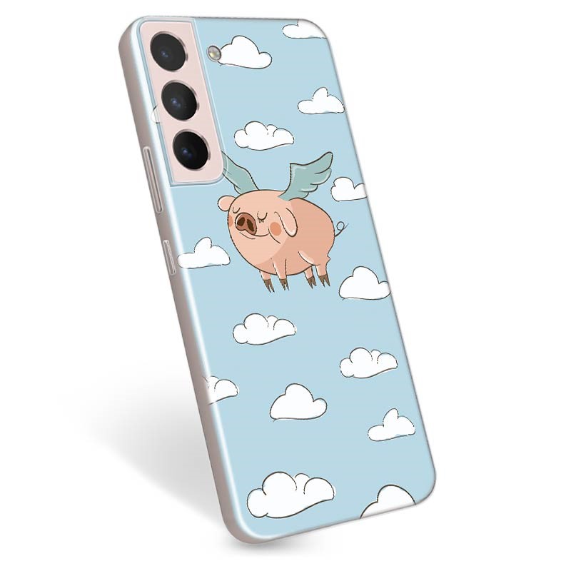 Protect your Samsung Galaxy S22 5G with a touch of whimsy using this delightful TPU case adorned with the charming motif of a flying pig. Not only does this case offer a unique and playful design set against a sky blue background decorated with fluffy white clouds, but it also provides practical protection for your device.