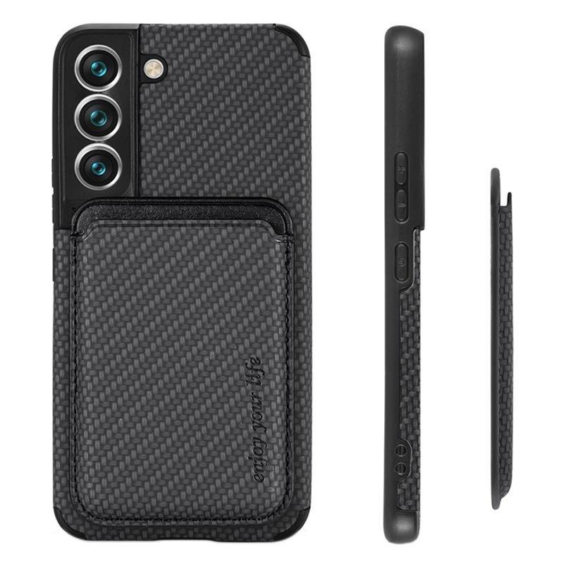 Samsung Galaxy S22 5G Magnetic Case with Card Holder - Carbon Fiber