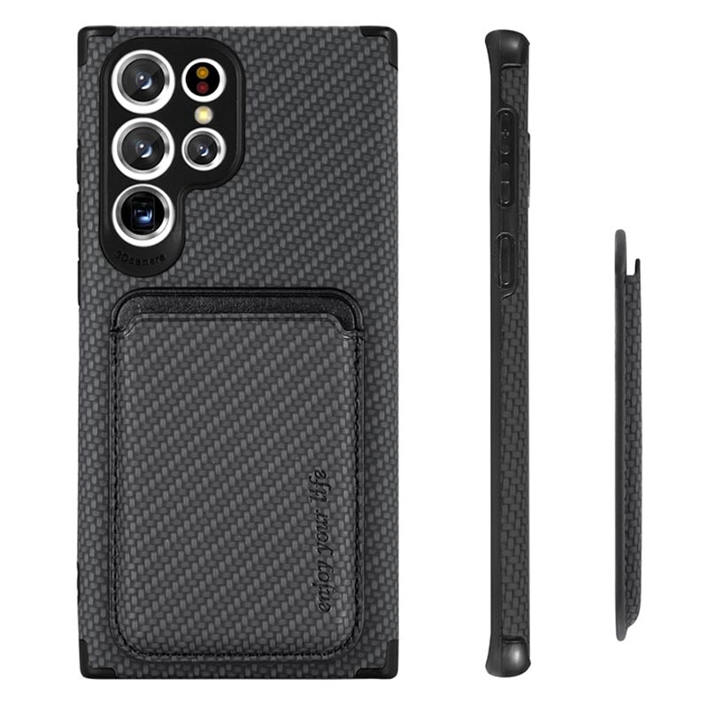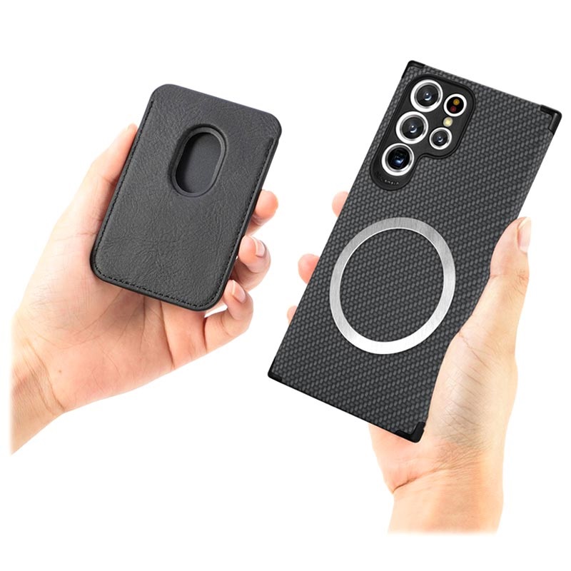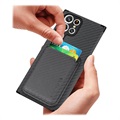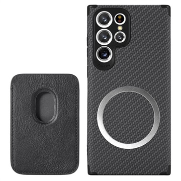 Samsung Galaxy S22 Ultra 5G Magnetic Case with Card Holder - Carbon Fiber