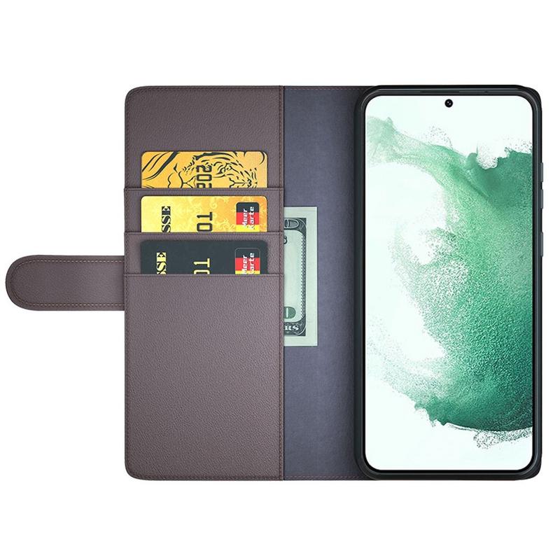 A high-quality sophisticated leather case for your Samsung Galaxy S23 5G. Give your phone a premium look, while keeping it safe from scratches and common damage. This multifunctional soft leather wallet case has inner pockets for cards and one larger pocket for cash. On top of that Samsung Galaxy S23 5G genuine leather case has hands-free viewing stand and front cutout for talking with case closed.